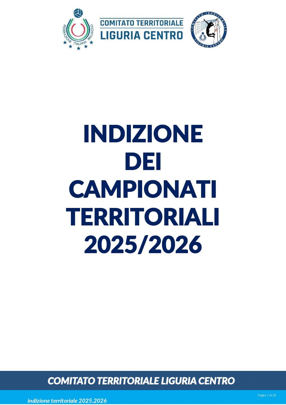 INDIZIONE CAMPIONATI TERRITORIALI 2025-26 - CT Liguria Centro